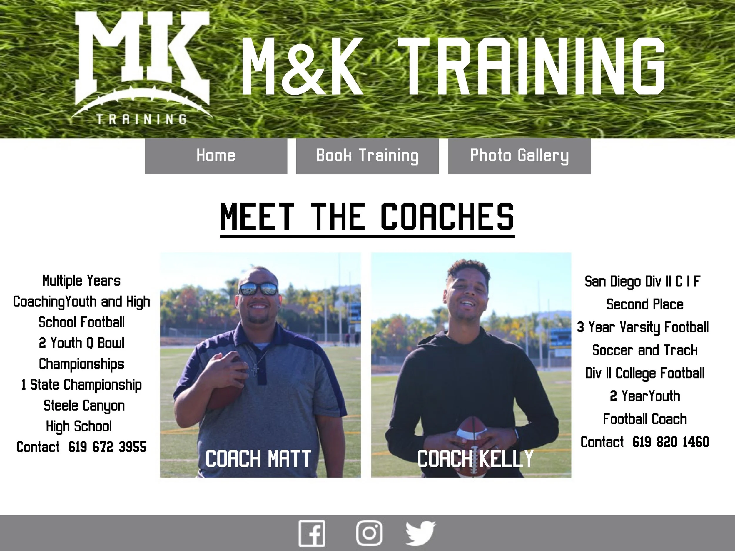 MK Training is a youth football training program in El Cajon created by Kevin Kelly, a former El Cajon High football player. Kevin was looking for a bold logo that could be used across many platforms that incorporated his and his business partners initials. The final logo uses a classic jersey style font and bold format to create a logo that is creative but still recognizable as a sports logo.